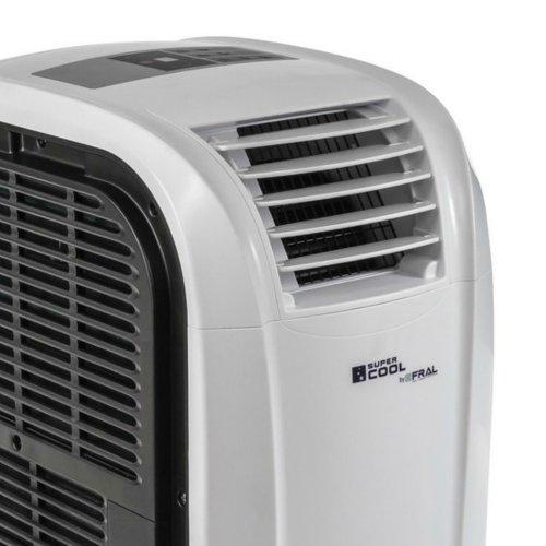 Verrijdbare airconditioner Fral FSC09 met lucht-lucht warmtepomp. De smalle airco is bijzonder veelzijdig dankzij de dubbele slang aansluiting (optie). De mobiele airco kan ook buiten de te koelen of te verwarmen ruimte opgesteld worden. De slang kan vanuit een naastgelegen ruimte door een doorvoer in de tussenwand of door een raam worden geplaatst. Op deze wijze ervaart u geen hinder van de airco, u geniet enkel van de optimale omstandigheden. Mobiele airco Fral FSC09 beslaat weinig ruimte, zijn vermogen voor koelen en verwarmen is 2,6 kW. Een afvoerslang voor warme lucht is bijgesloten. Fral FSC09 wordt veel toegepast in bedrijven en kantooromgevingen.